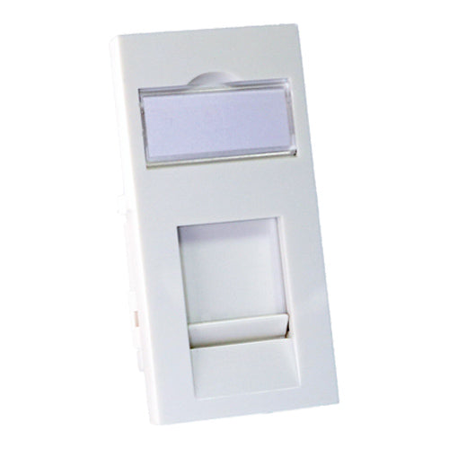 The 25mm x 50mm adaptors are used to fix keystone jacks into a standard Euro sized faceplate. The shutters are available in 25mm x 50mm and LJ6C sizes and can be flat or angled. All shutters come with a labelling window for easy outlet identification and a spring-loaded shutter to protect the jack socket from dust ingress.